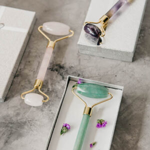 Roller en cuarzo rosa: Es un rodillo que ayuda a remover impurezas. Sirve para aplicar producto, sea crema, mascarilla, aceite, entre otros. El cuarzo rosa nos conecta con nuestro propio amor y nos ayuda a remover del rostro los rastros de tristeza que se reflejan en él, y que son manifestados en flacidez y líneas de expresión.
